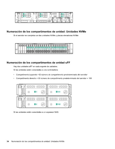 34 Numeración de los compartimentos de unidad: Unidades NVMe