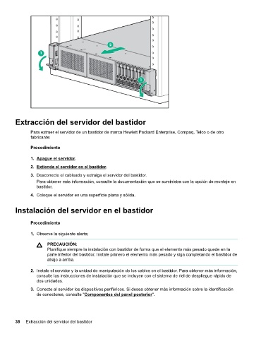 38 Extracción del servidor del bastidor