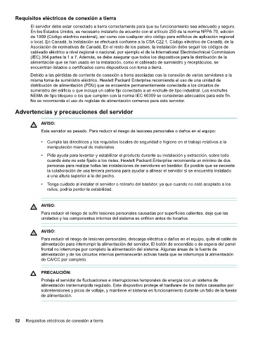 52 Requisitos eléctricos de conexión a tierra
