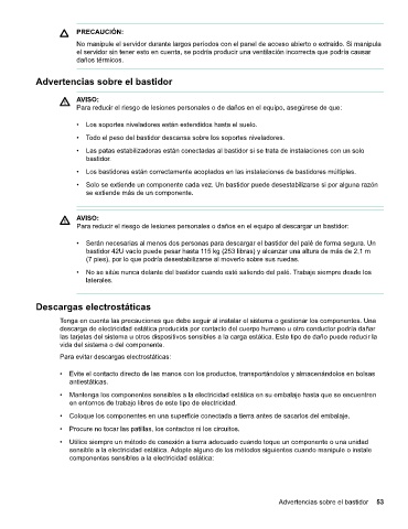 Advertencias sobre el bastidor 53