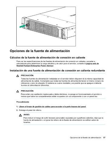 Para ver las especificaciones de las fuentes de alimentación de conexión en caliente y acceder a