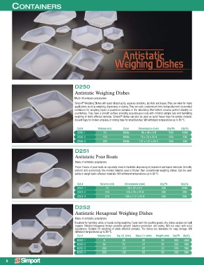 weighing of static-affected samples. Simport dishes can also be used as quick freeze trays for sample material,