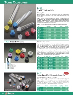 Cat. # For tubes Color Qty/Pk Qty/Cs