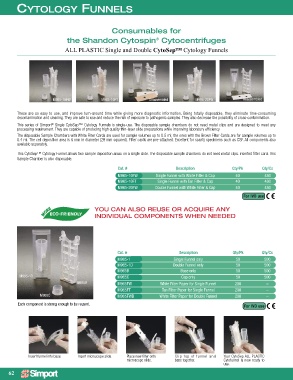 This series of Simport Single CytoSep™ Cytology Funnels is single-use. The disposable sample chambers do not need metal clips and are designed to meet any