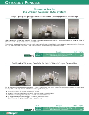 Dual CytoSep™ Cytology Funnels for the Unitech (Wescor) Cytopro Cytocentrifuge