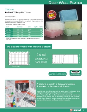The 2.2 ml well capacity (2.1 ml when capped) plate is used mainly for compound