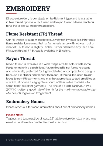 Pantone matching capabilities. Rayon thread is not flame resistant