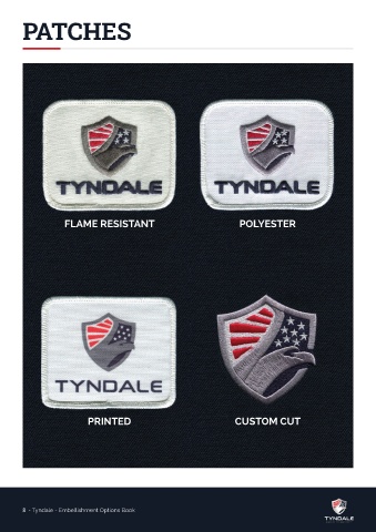 PATCHES FLAME RESISTANT POLYESTER PRINTED CUSTOM CUT 8 - Tyndale - Embellishment Options Book