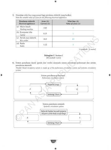 5. Nyatakan nilai fius yang sesuai bagi peralatan elektrik yang berikut.