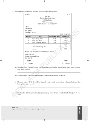 3. Dokumen berikut diperoleh daripada Syarikat Alatan Sukan Andre.