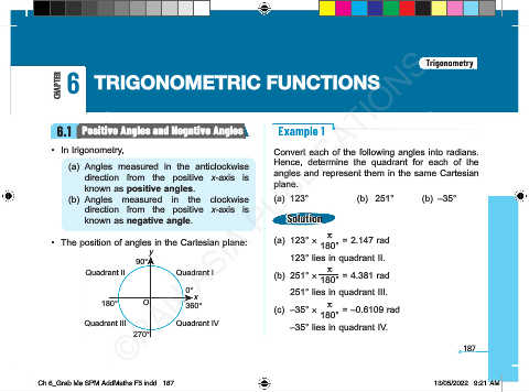 (a) Angles measured in the anticlockwise Hence, determine the quadrant for each of the