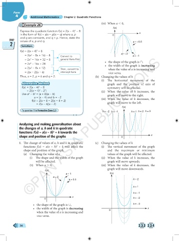 = 2[(x − 4) – 2 ] (ii) When the value of h increases, the