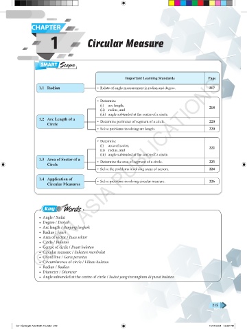 1.1 Radian • Relate of angle measurement in radian and degree. 217
