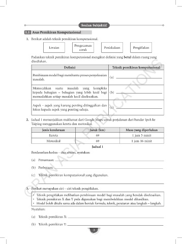 2. Jadual 1 menunjukkan maklumat dari Google Maps untuk perjalanan dari bandar Ipoh ke