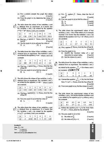 (a) Plot log y against (2x – 1). Hence, draw the line 11. The table shows the experimental values of two