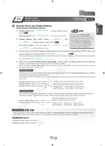 1. Nombor proton ialah bilangan proton di dalam nukleus sesuatu Tip SPM BAB 2