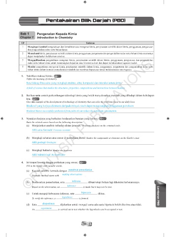 1 Mengingat kembali pengetahuan dan kemahiran asas mengenai kimia, penyiasatan saintifik dalam kimia, penggunaan, pengurusan