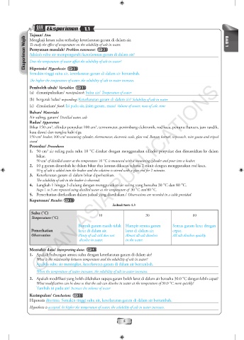Eksperimen Wajib To study the effect of temperature on the solubility of salt in water.