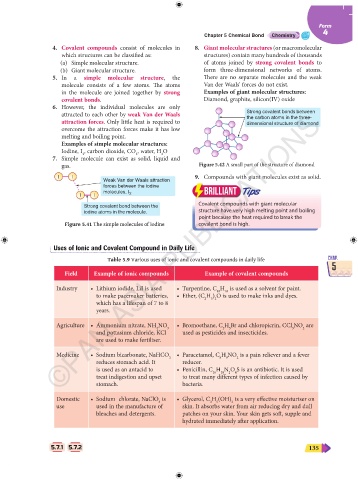 CHAP. Table 5.9 Various uses of ionic and covalent compounds in daily life CHAP.