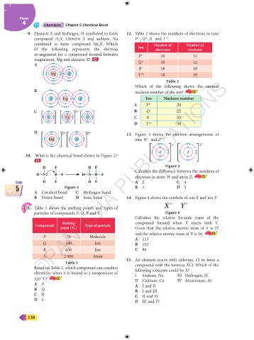 9. Element X and hydrogen, H combined to form 12. Table 2 shows the numbers of electrons in ions