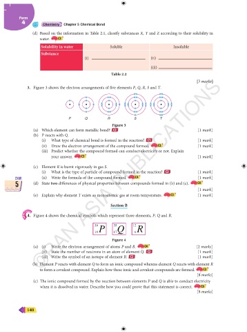 3. Figure 3 shows the electron arrangements of five elements P, Q, R, S and T.