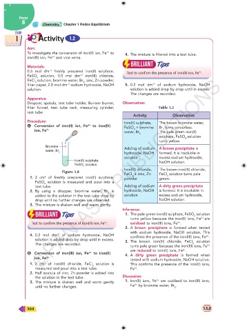 1. 2 cm of iron(III) chloride, FeCl solution is This confirms the presence of the iron(II) ions,
