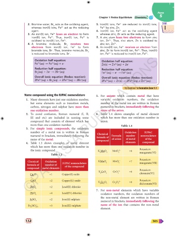 CHAP. 2. Bromine water, Br acts as the oxidising agent, 5. Iron(III) ions, Fe are reduced to iron(II) ions, CHAP.