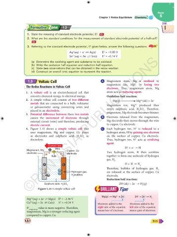 4. Figure 1.15 shows a simple voltaic cell that C Each hydrogen ion, H is reduced to a