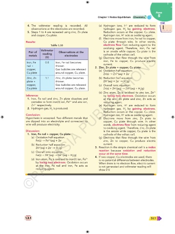 1 4. The voltmeter reading is recorded. All (e) Hydrogen ions, H are reduced to form 1