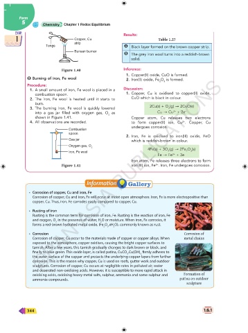 B Burning of iron, Fe wool 2. Iron(II) oxide, Fe O is formed.