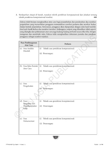3. Berdasarkan situasi di bawah, nyatakan teknik pemikiran komputasional dan jelaskan tentang