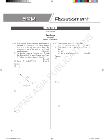 1. (a) Diagram 1 on the answer space shows a part of 2. (a) Given that the range of y = f (x) + 1 is