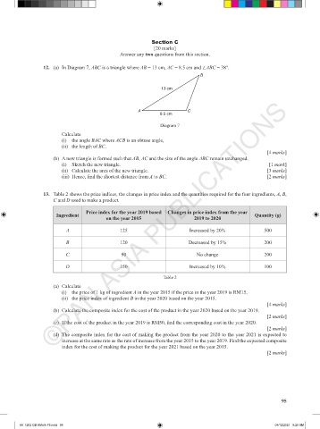 12. (a) In Diagram 7, ABC is a triangle where AB = 13 cm, AC = 8.5 cm and ∠ABC = 38°.