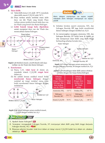 boleh membentuk ikatan hidrogen dengan hidrogen dan didih tarikan van didih