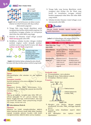 5 tidak meruap pada suhu bilik. Jadual 5.5 Perbandingan sifat antara sebatian ion
