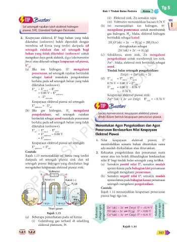 force) atau dikenali sebagai keupayaan sel piawai, Zn . Maka, elektrod zink bertindak sebagai