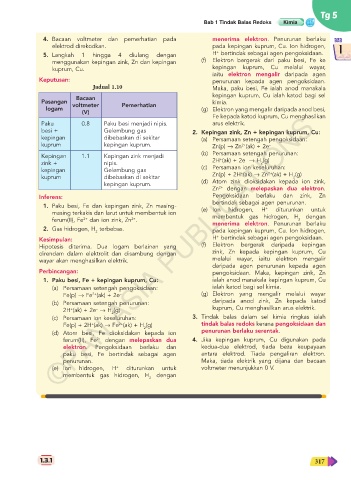 2H (ak) + 2e ˜ H (g) kuprum, Cu menghasilkan arus elektrik.