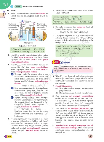 Rajah 1.17 Sel Daniell Anod: Zn(p) Zn (ak) + 2e E = –0.76 V