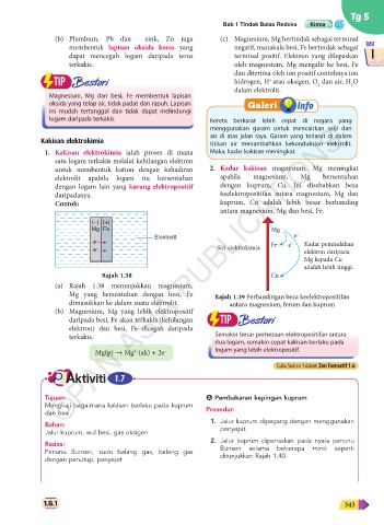Mg yang bersentuhan dengan besi, Fe Rajah 1.39 Perbandingan beza keelektropositifan