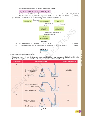Jadual 9 menunjukkan bahan tindak balas dan keadaan tindak balas yang terlibat. KERTAS MODEL SPM