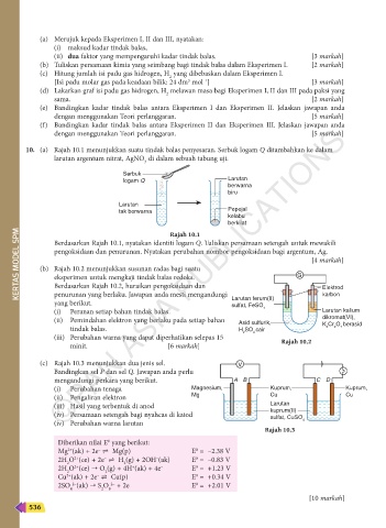 10. (a) Rajah 10.1 menunjukkan suatu tindak balas penyesaran. Serbuk logam Q ditambahkan ke dalam