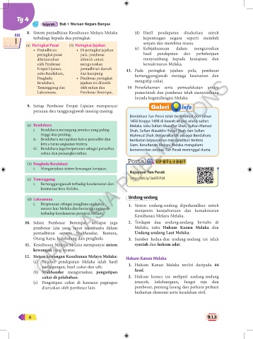8. Sistem pentadbiran Kesultanan Melayu Melaka (d) Hasil pendapatan disalurkan untuk