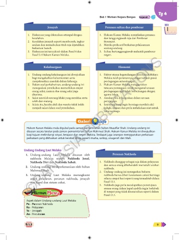 1. Hukuman yang dikenakan setimpal dengan 1. Hukum Kanun Melaka menjelaskan peranan