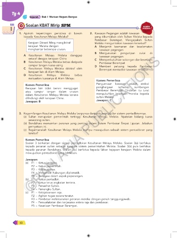 Soalan 3 berkaitan dengan sistem pentadbiran Kesultanan Melayu Melaka. Soalan 3(a) berfokus