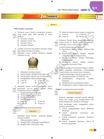 B I dan IV D III dan IV Pada pandangan anda, mengapakah sultan
