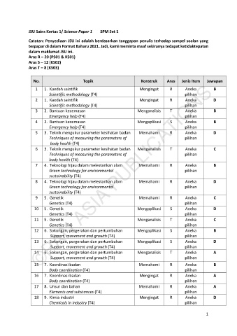 JSU Sains Kertas 1/ Science Paper 1 SPM Set 1