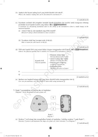 (d) Pilih satu kuantiti fizik yang sesuai diukur dengan menggunakan alat P dan Q. TP 3 KBATKBAT Mengaplikasi