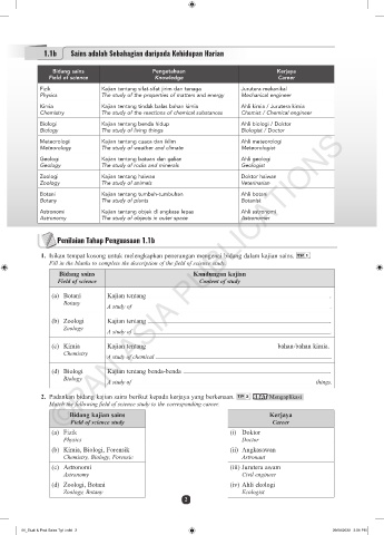 1. Isikan tempat kosong untuk melengkapkan penerangan mengenai bidang dalam kajian sains. TP 1