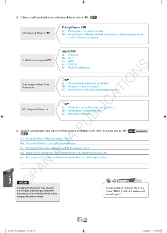 2. Tuliskan maklumat berkaitan pelibatan Malaysia dalam PBB. TP 2