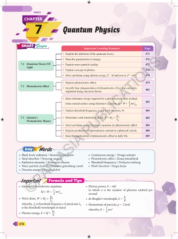 • Wave-particle duality / Kedualan gelombang-zarah • Work function / Fungsi kerja